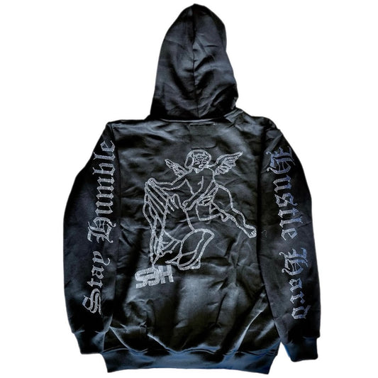 S3H Angel Rhine Stone Full Zip Up Hoodie