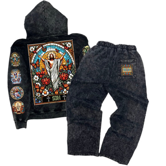 S3H RHINE STONE ALLOVER FLAME RHINE STONES SWEATSUIT